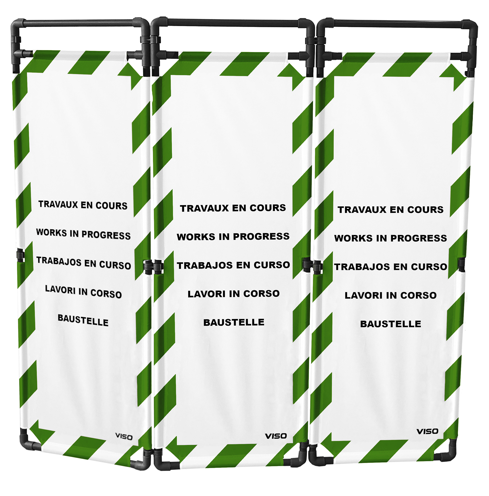 This is Green/White PVC Folding Barrier manufactured by Viso. The manufacturer part number is TRAVO180JARD. It is a folding barrier barrier. It has a decent green/white colour. The product is made from highly stable and reliable pvc. Its barrier is made from polyester material . Its accurate length is 1,70m. In addition, the height is 1,8 m. Additionally, it has a Barrier Text work in progress Its barrier is of green-white colour .