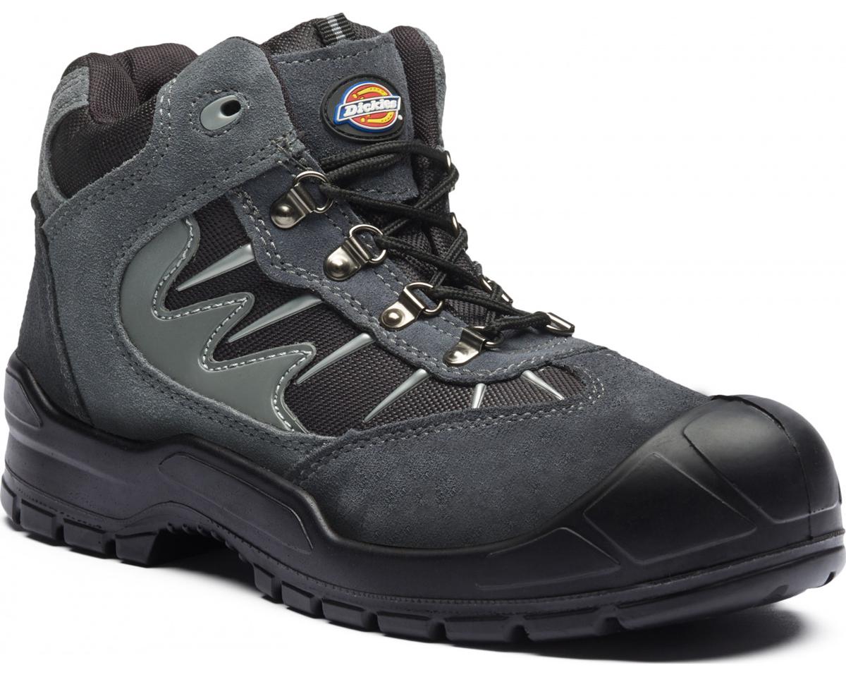 This is Storm II Grey Mesh Suede Boot UK 11 EUR 45 S1P manufactured by Dickies. The manufacturer part number is FA23385S GY Sz11. While in the UK, it has the size of 11. It is a lace up closure with unique specifications. Anti-Slip Options - yes. Anti-Static Options - yes. Safety Toe Options - yes. The product storm ii, is a highly preferred choice for users. It has a decent grey colour. It features a s1p safety rating. The European shoe size includes 45. Penetration Resistant Options - yes. The product's upper materials include mesh, suede. It is rated with src slip resistance. A bespoke product is highly resistant to anti-penetration. This steel safety toe is a preferred choice for a wide variety of professionals and DIYers. The midsole is a steel sole. Moreover, it includes additional safety features like p .