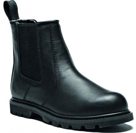This is Fife II Black Leather Boot UK 10 EUR 44 SB manufactured by Dickies. The manufacturer part number is FD9214A BK Sz10. While in the UK, it has the size of 10. It is a pull/slip on closure with unique specifications. Anti-Slip Options - yes. Safety Toe Options - yes. The product fife ii, is a highly preferred choice for users. It has a decent black colour. It features a sb safety rating. The European shoe size includes 44. Penetration Resistant Options - yes. The product's upper materials include leather. It is rated with sra slip resistance. A bespoke product is highly resistant to heat. This steel safety toe is a preferred choice for a wide variety of professionals and DIYers. The midsole is a steel sole. Moreover, it includes additional safety features like hro .