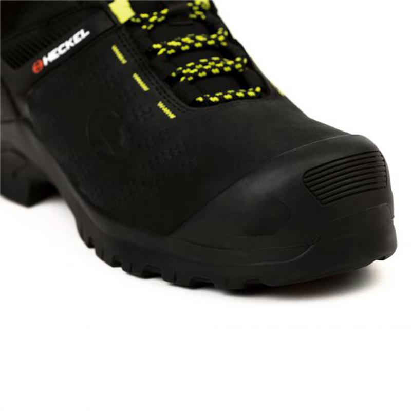 This is Boot Black Safety MacCrossroad 3. manufactured by Heckel. The manufacturer part number is 67313-13. While in the UK, it has the size of 13. It is a lace up closure with unique specifications. Anti-Slip Options - yes. The product heckel, is a highly preferred choice for users. Anti-Static Options - yes. It features a s3 safety rating. Water Resistant Options - yes. Safety Toe Options - yes. In addition, unisex is the available "Gender" of the product. It has a decent black colour. Its sole material is rubber . The European shoe size includes 48. Penetration Resistant Options - yes. The product's upper materials include leather. It is rated with src slip resistance. ESD Safety - no. It is offered with 14 US shoe size . This composite safety toe is a preferred choice for a wide variety of professionals and DIYers. The midsole is a non metallic sole. Moreover, it includes additional safety features like a .