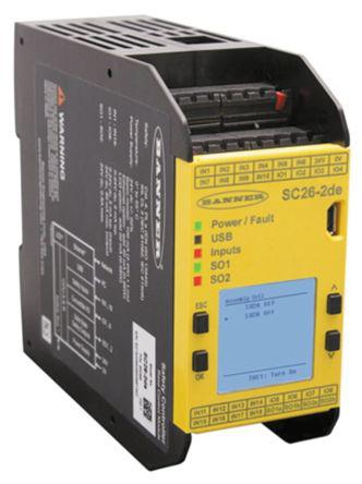 This is SC26 Series Safety Controller 26 Safety Inputs 2 Safety Outputs 24 V dc manufactured by Banner. The manufacturer part number is SC26-2. It provides robust safety and is complied with 4 safety category. Moreover, it has 2 safety outputs . The given dimensions of the product include 45 x 110 x 129 mm. It is IP rated with ip20, ip54. The rated contact current is 100 ma. The product sc26, is a highly preferred choice for users. It has a/an modbus/tcp type bus communication . Its accurate length is 45mm. Including 26 safety inputs . Furthermore, the product is 110mm wide. The product comes in 129mm depth. Features 24 v dc supply voltage. The integrated contact has 24 v dc of voltage rating. The terminal is a screw type. Additionally, it has sil 3 SIL .