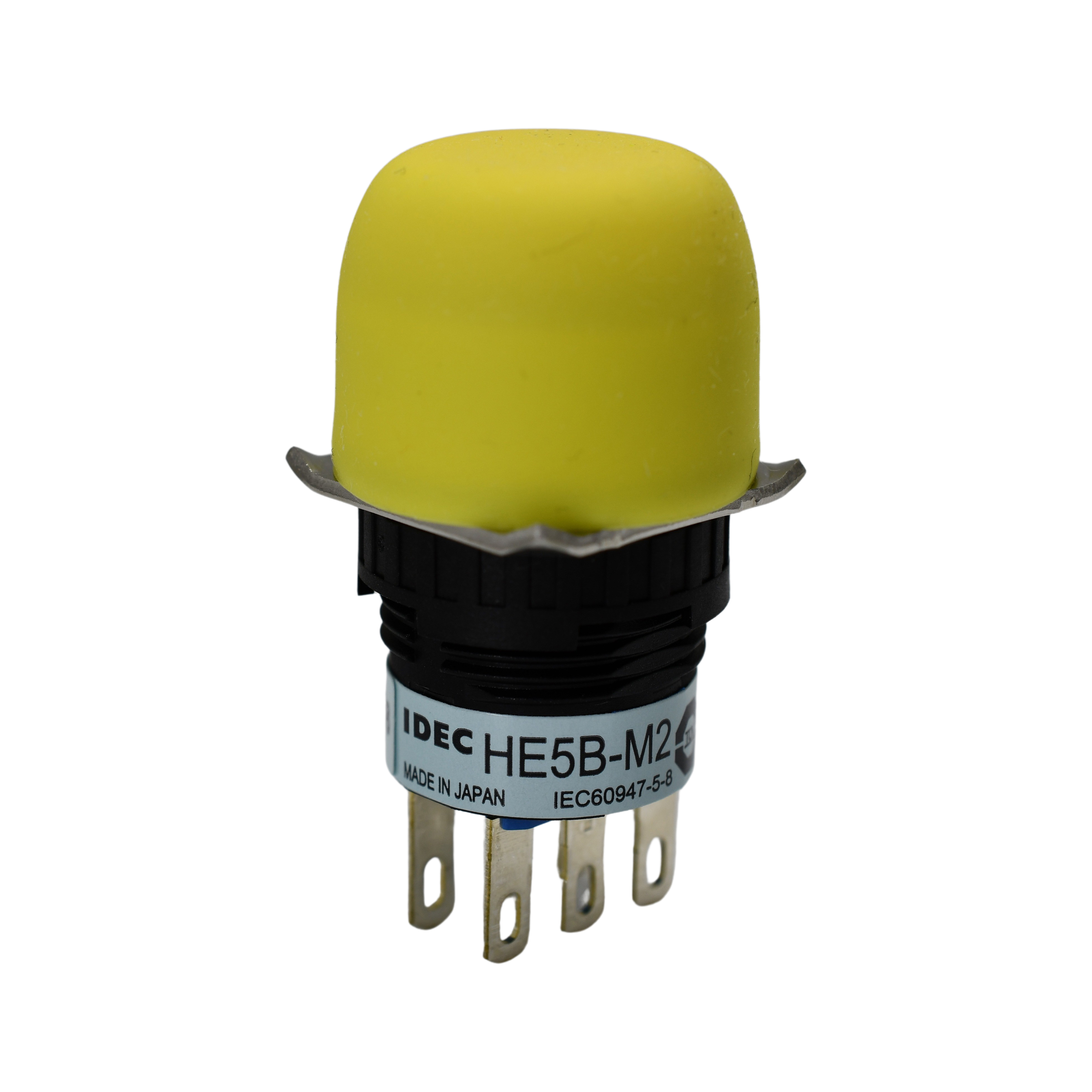 This is Double Pole Double Throw (DPDT) Latching Enabling Switch IP65 16 (Dia.)mm Central Fixing With Metal Lock Nut manufactured by Idec. The manufacturer part number is HE5B-M2PY. The contact is equipped with dpdt configuration. It is IP rated with ip65.