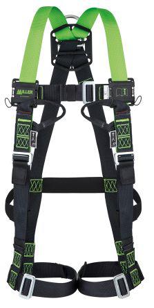 This is Front Rear Attachment Stretchable Safety Harness manufactured by Miller By Honeywell. The manufacturer part number is T. 3 : 1032841. It has a front, rear harness attachment point . It has a/an l/xl harness size . It has a/an steel fastener material . It has black, green harness colour . Its buckle type is pass through . It includes chest, leg, shoulder adjustable straps . In addition, it has padding none . It has a Hi-Vis no . It has 140kg weight capacity . It has a belt included no belt . It is reflective no .