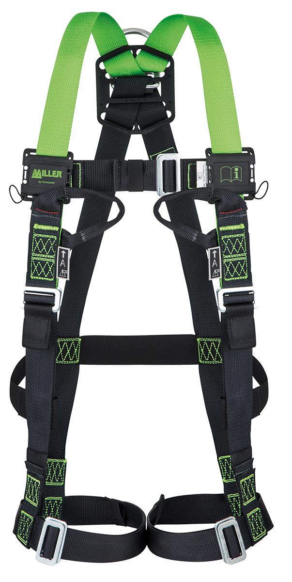 This is Front Rear Attachment Safety Harness M/L manufactured by Honeywell Safety. The manufacturer part number is T. 2 : 1032840. It has a front, rear harness attachment point . It has a/an m/l harness size . It has a/an steel fastener material . It has black, green harness colour . Its buckle type is pass through . It includes chest, leg, shoulder adjustable straps . In addition, it has padding none . It has a Hi-Vis no . It has 140kg weight capacity . It has a belt included no belt . It is reflective no .