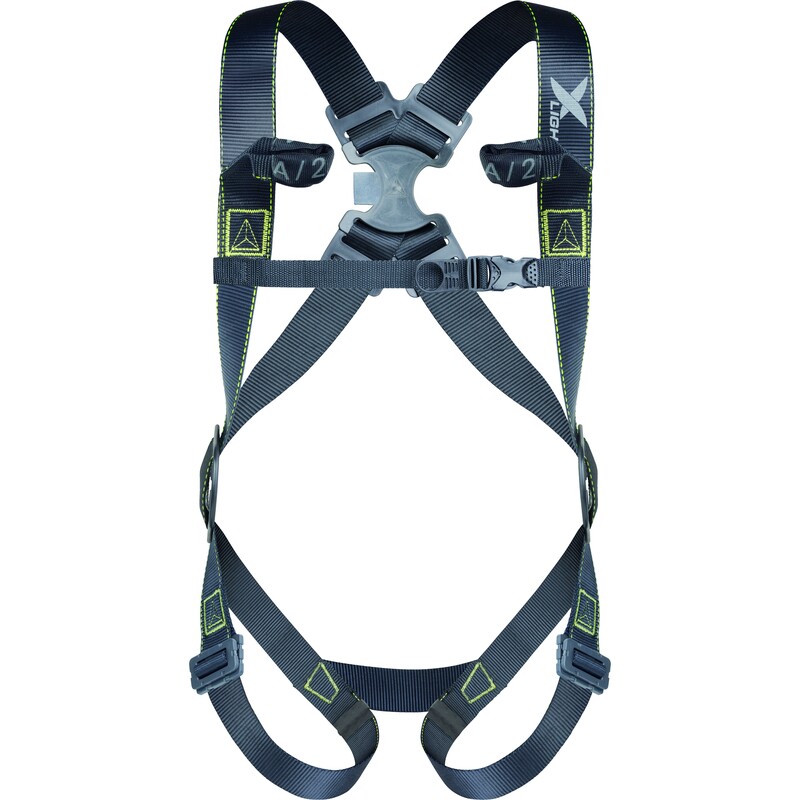 This is Rear Attachment Safety Harness 100kg Max XL/XXL manufactured by Delta Plus. The manufacturer part number is HAR22XXX. It has a belt included with belt . It has 100kg weight capacity . It has a/an xl/xxl harness size . It has a rear harness attachment point . It includes chest, leg, shoulder adjustable straps .