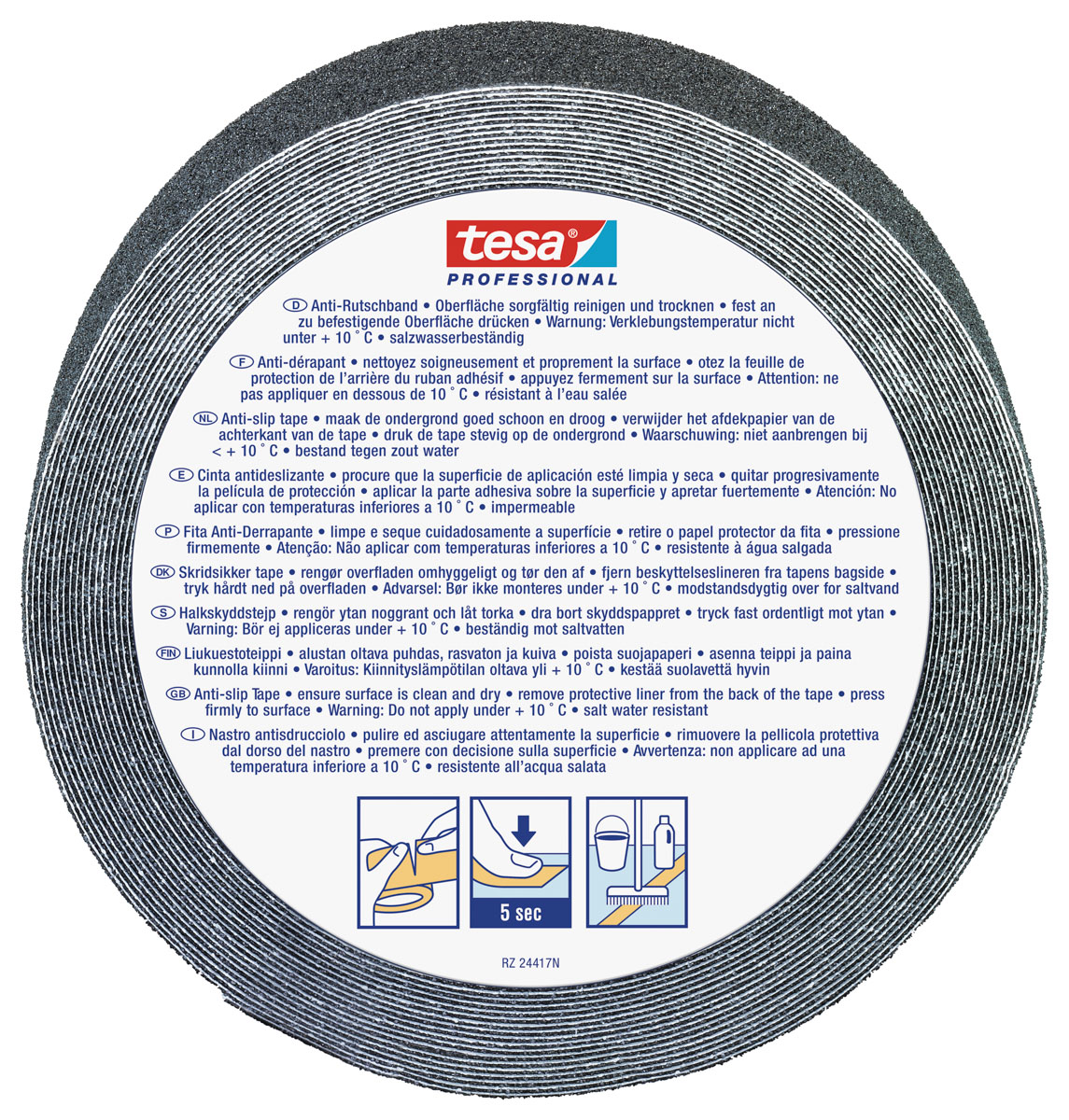This is Black PVC Anti-Slip Flooring Tape manufactured by Tesa. The manufacturer part number is 60950-00001-00. This highly innovate tape is a anti-slip tape with effective applications. Whereas, its backing is made using pvc material . It is 0.81mm thick. Furthermore, the product is 50mm wide. Its accurate length is 15m. It has a decent black colour.