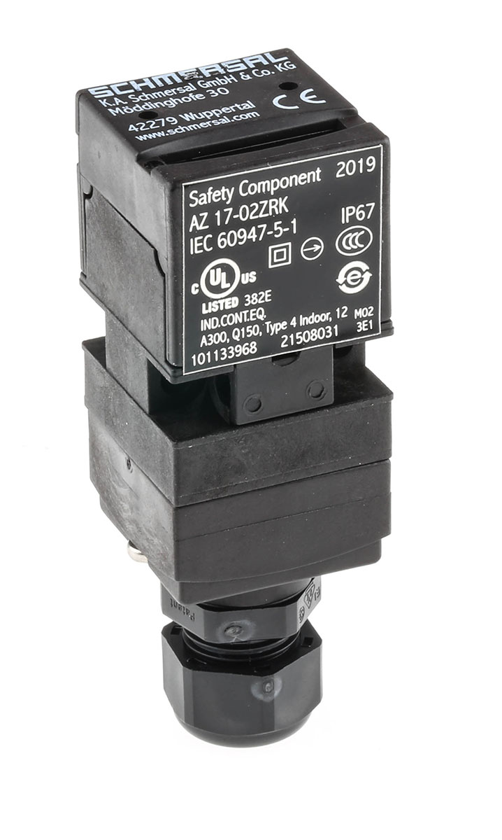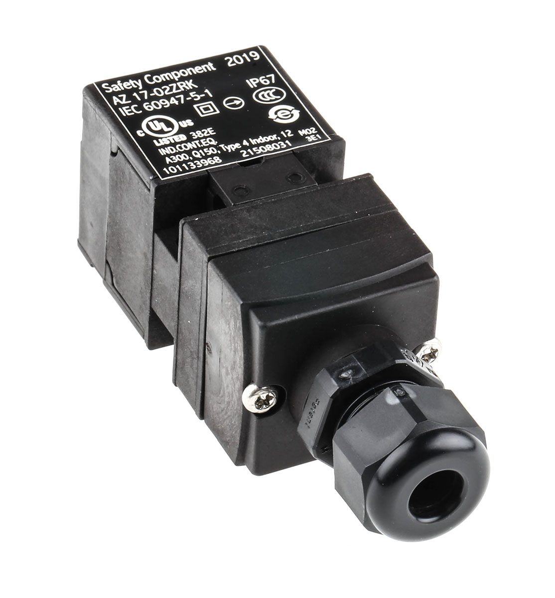This is AZ17 Safety Interlock Switch Fibreglass 2NC manufactured by Schmersal. The manufacturer part number is AZ 17-02ZRK. It has 24v maximum DC voltage. A bespoke product carries 230v of maximum AC voltage. The normal state configuration includes 2nc. It also carries 4a maximum current. It is IP rated with ip67. It has a keyed style lock . The product az17, is a highly preferred choice for users. Its accurate length is 85mm. It contains 4 head directions . The product also features robust glass fibre reinforced thermoplastic housing material. Furthermore, the product is 30mm wide. The product comes in 30mm depth. It includes 2nc safety contacts . It has a maximum operating temperature of +80°c. Whereas, the minimum operating temperature of the product is -30°c. It allows m16 connection type.