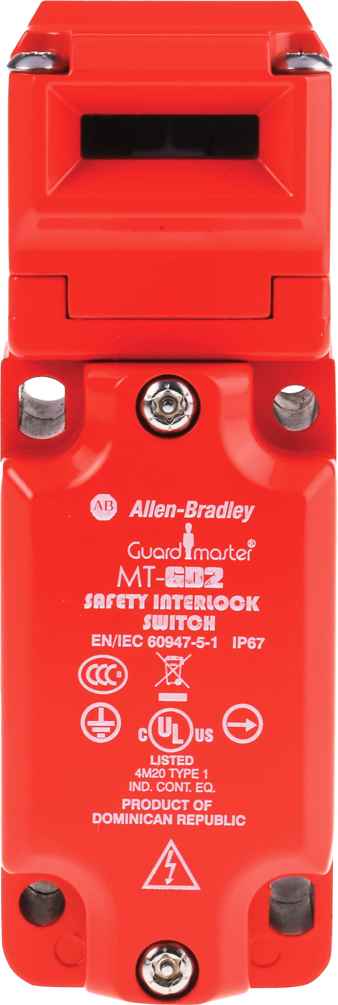 This is 440K Safety Interlock Switch Painted Zinc 2NC/1NO manufactured by Allen Bradley Guardmaster. The manufacturer part number is 440K-MT55001. It has 250v maximum DC voltage. A bespoke product carries 500v of maximum AC voltage. It includes 2nc safety contacts . It also carries 2.2a maximum current. It is IP rated with ip67. It has a keyed style lock . The product 440k, is a highly preferred choice for users. The normal state configuration includes 2nc/1no. Its accurate length is 40.7mm. It contains 8 head directions . The product also features robust zinc housing material. Furthermore, the product is 40mm wide. The product comes in 116.5mm depth. Additionally, it has a/an interlock type lock . It features mt-gd2 range. It has 1no high-quality auxiliary contact . It has a maximum operating temperature of +80°c. Whereas, the minimum operating temperature of the product is -20°c. It allows m20 connection type.