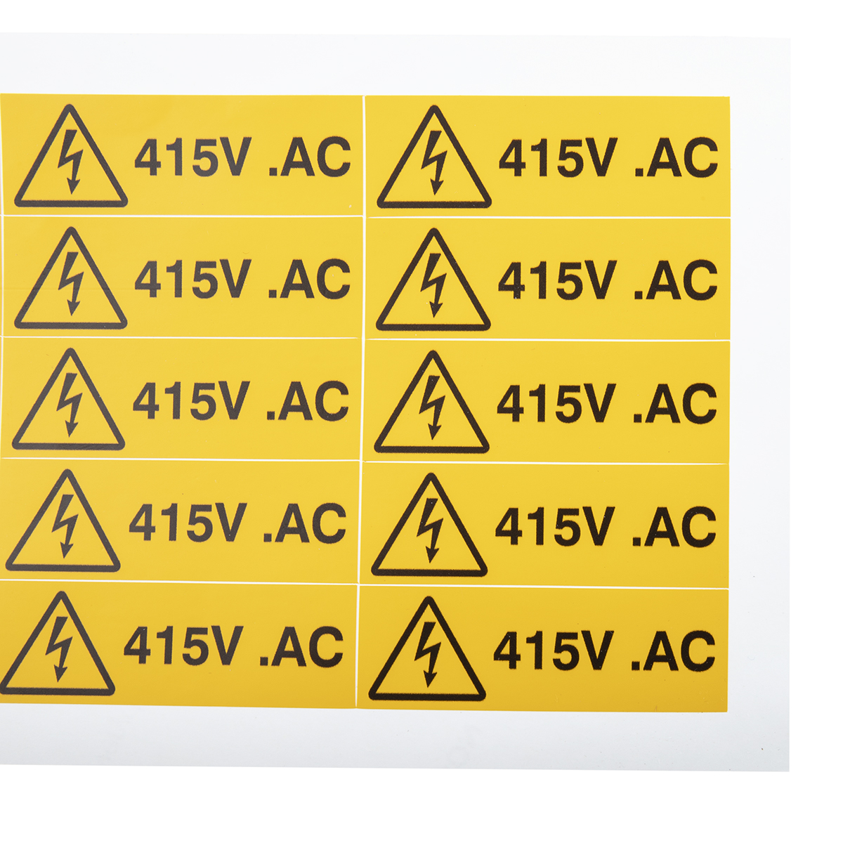 This is Electricity Danger Sign with English Text Vinyl 60 x 20mm 20 Hazard Warning Label manufactured by RS Pro. The manufacturer part number is 776-0942. Its text message shows 415v ac . Additionally, it is self-adhesive yes . It has a decent black/yellow colour. The product is made from highly stable and reliable vinyl. In addition, the height is 20 mm. Furthermore, the product is 60mm wide. It contains 20 item per package . However, its text language is english . In addition, it displays electricity danger sign description .