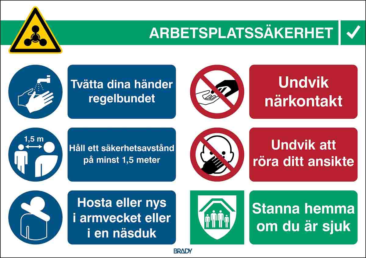 This is Safety Poster PP 371 mm 262mm manufactured by Brady. The manufacturer part number is 306843. Additionally, it is self-adhesive no . The product is made from highly stable and reliable pp. In addition, the height is 371 mm. Furthermore, the product is 262mm wide. However, its text language is swedish . It comes in poster configuration.