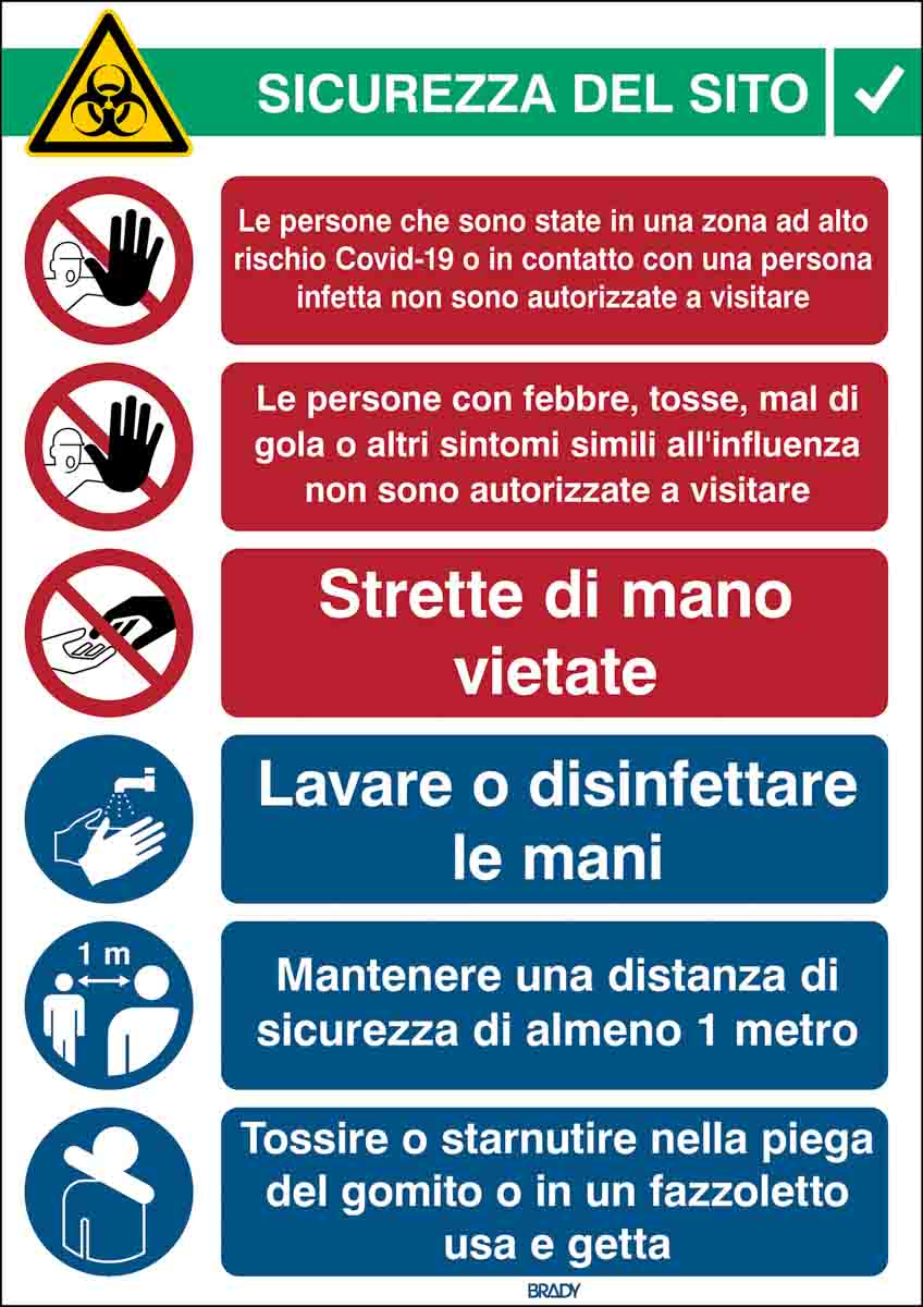 This is Safety Wall Chart Polypropylene Italian 371 mm 262mm manufactured by Brady. The manufacturer part number is 306929. Additionally, it is self-adhesive no . The product is made from highly stable and reliable polypropylene b-7527. In addition, the height is 371 mm. Furthermore, the product is 262mm wide. However, its text language is italian . It comes in wall chart configuration.