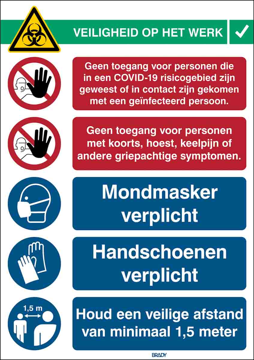 This is Safety Wall Chart Polypropylene B-7527 371 mm 262mm manufactured by Brady. The manufacturer part number is COVID-19-REC2-PP-NL. Furthermore, the product is 262mm wide. The product is made from highly stable and reliable polypropylene b-7527. It comes in wall chart configuration. Additionally, it is self-adhesive no . In addition, the height is 371 mm.