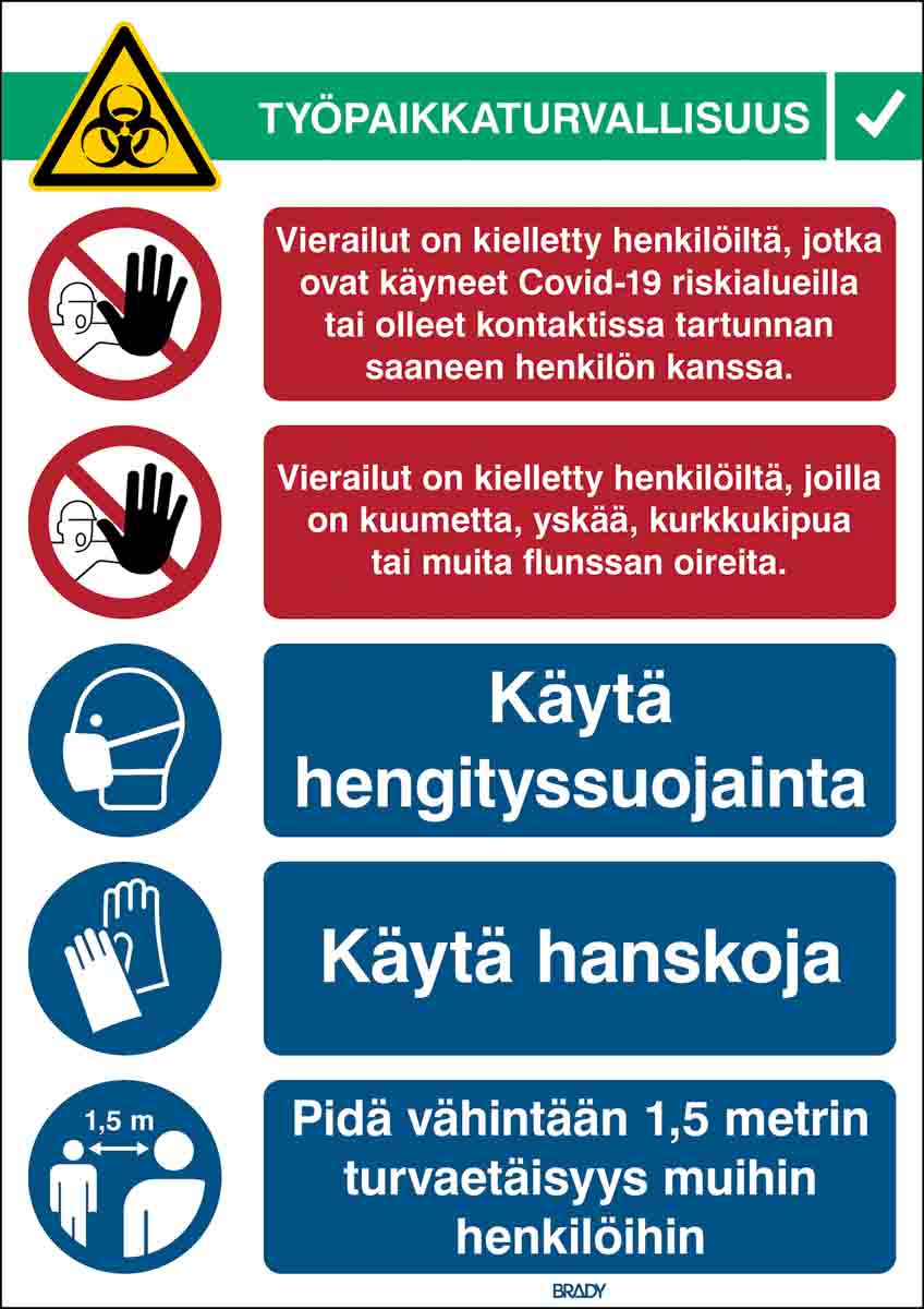This is Safety Wall Chart Polypropylene B-7527 371 mm 262mm manufactured by Brady. The manufacturer part number is COVID-19-REC2-PP-FI. Furthermore, the product is 262mm wide. The product is made from highly stable and reliable polypropylene b-7527. It comes in wall chart configuration. Additionally, it is self-adhesive no . In addition, the height is 371 mm.