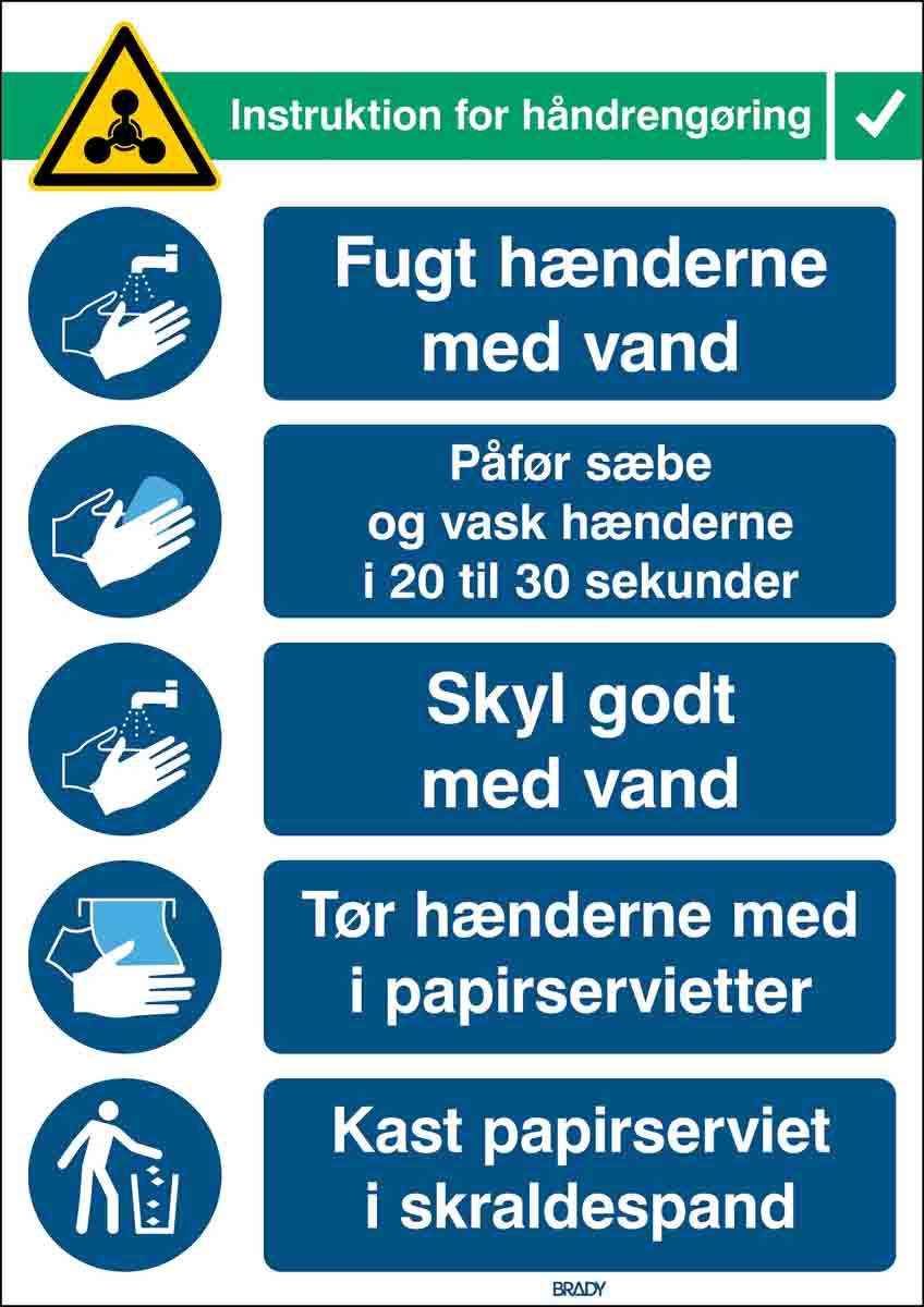 This is Safety Wall Chart Polypropylene B-7527 Danish 371 mm 262mm manufactured by Brady. The manufacturer part number is HAND WASH INST-PP-DK. Additionally, it is self-adhesive no . The product is made from highly stable and reliable polypropylene b-7527. In addition, the height is 371 mm. Furthermore, the product is 262mm wide. However, its text language is danish . It comes in wall chart configuration.