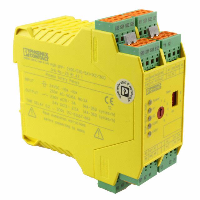 This is manufactured by Phoenix Contact. The manufacturer part number is 2981431. It includes 5 safety contacts . It is supplied with 2 channels. Features 24v supply voltage. It is assigned with possible HTSUS value of 8504.31.2000. The product is rohs3 compliant. The coil voltage of the product is 24vdc. Moreover, it has spring terminal terminal style. The product has -20°c ~ 55°c operating temperature range. It holds up to 11 ohms coil resistance. It has a coil current of 155 ma. The product's switching voltage is 250vac, 250vdc - max. In addition, it is reach affected. It is shipped in bulk package . It also has a 3pst-no (3 form a) contact form. Its typical moisture sensitivity level is 1 (unlimited). The operating time of the product is 70 ms. It has a long 8 weeks standard lead time. It has a contact current rating of 6 a. The product is available in din rail configuration. The product psr, is a highly preferred choice for users. While 20 ms is its release time. The product is made from sturdy silver tin oxide (agsno) materials. The product is designated with the ear99 code number.