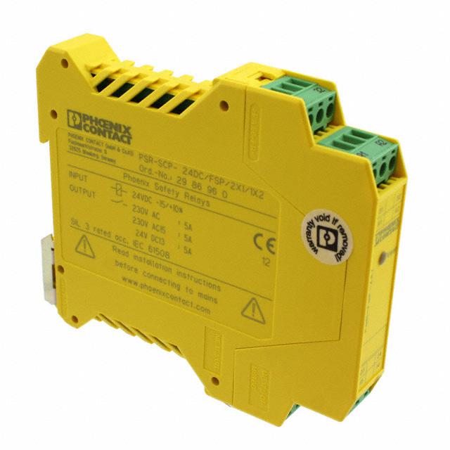 This is manufactured by Phoenix Contact. The manufacturer part number is 2986960. It has 3 SIL IEC 61508 safety standard . It includes 3 safety contacts . The product psr-scp- 24dc/fsp/2x1/1x2, is a highly preferred choice for users. Its accurate length is 99mm. It is configurable no . Furthermore, the product is 17.5mm wide. The product comes in 114.5mm depth. Features 24v dc supply voltage. It features psrclassic range. The terminal is a screw type. In addition, it has 4 safety category ISO 13849-1 . It is assigned with possible HTSUS value of 8536.41.0020. The product is rohs3 compliant. The coil voltage of the product is 24vdc. Moreover, it has screw terminal terminal style. The product has -20°c ~ 55°c operating temperature range. It has a coil current of 55 ma. The product's switching voltage is 250vac, 250vdc - max. In addition, it is reach affected. It is shipped in bulk package . It also has a dpst-no (2 form a) contact form. Its typical moisture sensitivity level is 1 (unlimited). The operating time of the product is 50 ms. It has a long 12 weeks standard lead time. It has a contact current rating of 5 a. The product is available in din rail configuration. While 50 ms is its release time. The product is designated with the ear99 code number. The product is made from sturdy silver copper nickel (agcuni) materials.