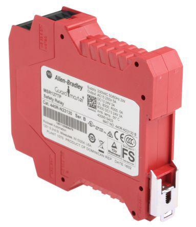 This is MSR127TP 230 V ac Safety Relay Single Channel with 3 Safety Contacts and 1 Auxilary Contact manufactured by Allen Bradley Guardmaster. The manufacturer part number is 440R-N23130. It performs basic function of light beam/curtain, safety switch/interlock. Moreover, it has a/an automatic, manual reset method . It has 1 high-quality auxiliary contact . Its accurate length is 114.5mm. Furthermore, the product is 99mm wide. The product comes in 22.5mm depth. It is supplied with 1 channels. Features 230 v ac supply voltage. It includes 3 safety contacts . It features minotaur range. The terminal is a screw type.