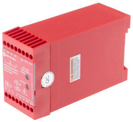 This is Minotaur MSR9T Safety Relay Dual Channel 24 V ac/dc 2 Safety 1 Auxiliary manufactured by Allen Bradley Guardmaster. The manufacturer part number is 440R-F23027. It performs basic function of safety switch/interlock. Moreover, it has a/an automatic, manual reset method . It has 1 high-quality auxiliary contact . Its accurate length is 75mm. Furthermore, the product is 52mm wide. The product comes in 32mm depth. It is supplied with 2 channels. Features 24 v ac/dc supply voltage. It includes 2 safety contacts . It features minotaur range.