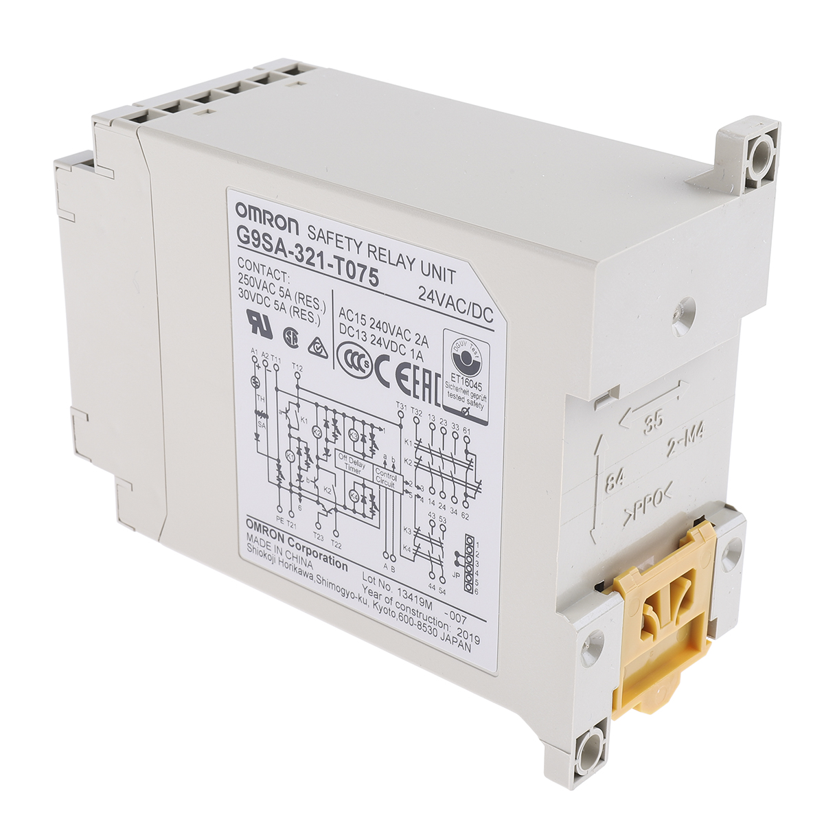 The Omron G9SA-321-T075 AC/DC24 provides robust protection for critical systems, ensuring safe and reliable operation in industrial and automation environments across the UK. Featuring 24V AC/DC input and dual-channel functionality, this safety relay is equipped with 3 safety contacts and 1 auxiliary contact for versatile control. Designed for maximum reliability and safety, it meets high standards for industrial applications, making it an essential component for machinery safety and emergency stop circuits. Moreover, the G9SA relay guarantees safe operation, reducing downtime and minimising the risk of accidents. It minimises risks and boosts productivity by enhancing the safety of control circuits and machinery.
