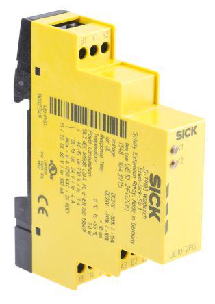 This is UE10 24 V dc Safety Relay Single or Dual Channel with 3 Safety Contacts manufactured by Sick. The manufacturer part number is UE10-2FG2DO. It performs basic function of light beam/curtain. Its accurate length is 89.8mm. Furthermore, the product is 17.8mm wide. The product comes in 70.8mm depth. It is supplied with 1, 2 channels. Features 24 v dc supply voltage. It includes 3 safety contacts . The terminal is a screw type.