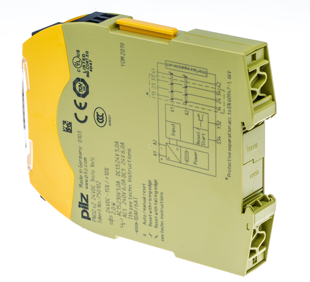 This is Configurable 24 V dc Safety Relay Single Channel with 3 Safety Contacts and 1 Auxilary Contact manufactured by Pilz. The manufacturer part number is 750102. It performs basic function of emergency stop. It has 3 SIL IEC 61508 safety standard . Moreover, it has a/an automatic, manual, monitored reset method . It includes 3 safety contacts . Moreover, it has e PL ISO 13849-1 . It has a/an e performance level . The product pnoz s2, is a highly preferred choice for users. Its accurate length is 102mm. It is configurable yes . Furthermore, the product is 17.5mm wide. The product comes in 120mm depth. It is supplied with 1 channels. Features 24v dc supply voltage. It features pnozsigma range. It has 1 high-quality auxiliary contact . The terminal is a screw type. In addition, it has 4 safety category ISO 13849-1 .