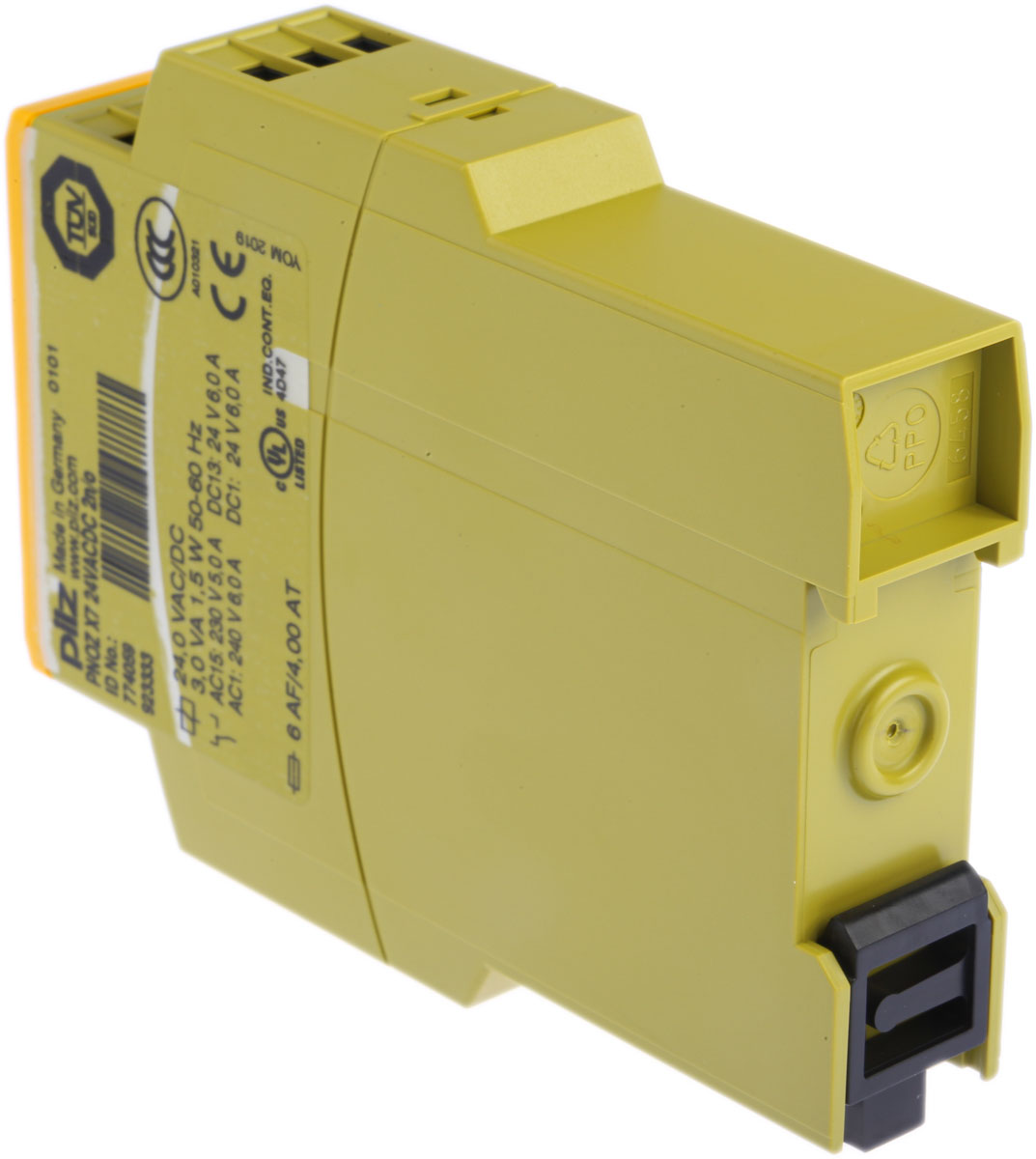 This is 24 V ac/dc Safety Relay Single Channel with 2 Safety Contacts Compatible With Safety Switch/Interlock manufactured by Pilz. The manufacturer part number is 774059. It performs basic function of emergency stop. It has 3 SIL IEC 61508 safety standard . Moreover, it has a/an automatic, manual, monitored reset method . In addition, it has 2 safety category ISO 13849-1 . Moreover, it has e PL ISO 13849-1 . It has a/an e performance level . The product pnoz x7, is a highly preferred choice for users. Its accurate length is 87mm. Furthermore, the product is 22.5mm wide. The product comes in 121mm depth. It is supplied with 1 channels. Features 24v ac/dc supply voltage. It includes 2 safety contacts . It features pnoz x range. The terminal is a screw type.