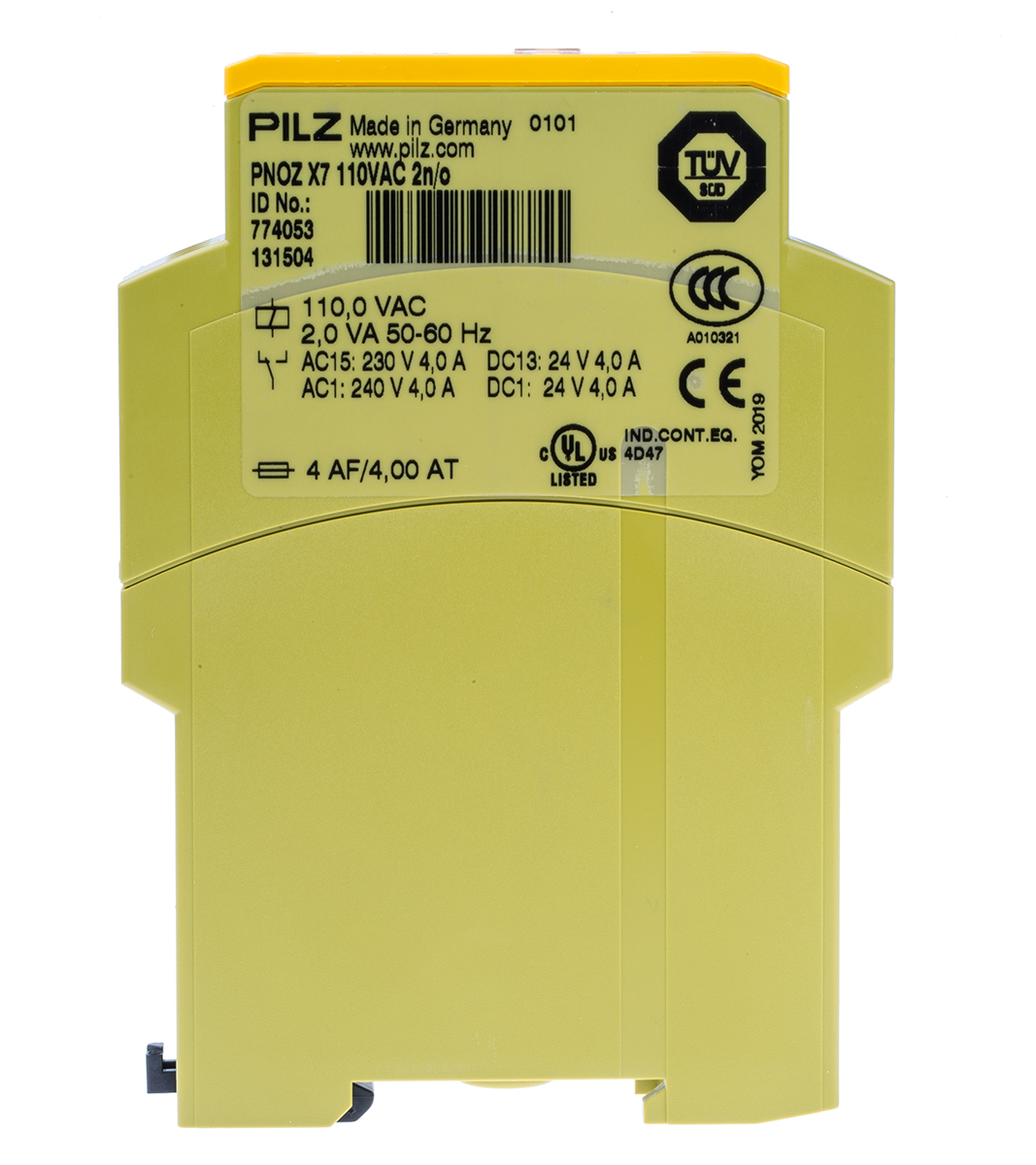 This is 110 V ac Safety Relay Single Channel with 2 Safety Contacts Compatible With Safety Switch/Interlock manufactured by Pilz. The manufacturer part number is 774053. It performs basic function of emergency stop. It has 3 SIL IEC 61508 safety standard . Moreover, it has a/an automatic, manual, monitored reset method . It includes 2 safety contacts . Moreover, it has e PL ISO 13849-1 . It has a/an e performance level . The product pnoz x7, is a highly preferred choice for users. Its accurate length is 87mm. Furthermore, the product is 22.5mm wide. The product comes in 121mm depth. It is supplied with 1 channels. Features 110v ac supply voltage. It features pnoz x range. The terminal is a screw type. In addition, it has 2 safety category ISO 13849-1 .