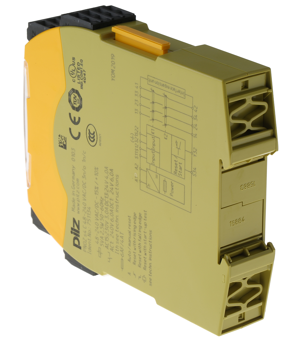 This is PNOZ s4 C 48-240VACDC 3 n/o 1 n/c manufactured by Pilz. The manufacturer part number is 751134. It performs basic function of emergency stop. It has a/an e performance level . Moreover, it has a/an automatic & manual reset method . In addition, it has 4 safety category ISO 13849-1 . Moreover, it has e PL ISO 13849-1 . It has 1 high-quality auxiliary contact . The product pnoz s4 c, is a highly preferred choice for users. Its accurate length is 98mm. Furthermore, the product is 22.5mm wide. The product comes in 120mm depth. It is supplied with 2 channels. Features 48 → 240v ac/dc supply voltage. It includes 3 safety contacts . It features pnozsigma range. The terminal is a cage clamp type.
