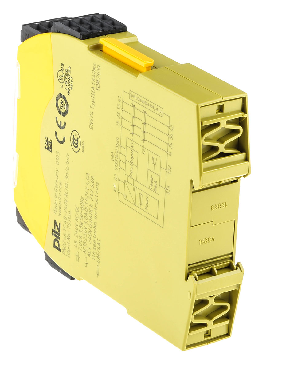 This is PNOZ s6.1 C 48-240VACDC 3 n/o 1 n/c manufactured by Pilz. The manufacturer part number is 751156. It performs basic function of two hand control. Moreover, it has a/an automatic reset method . It has 1 high-quality auxiliary contact . The product pnoz s6.1 c, is a highly preferred choice for users. Its accurate length is 98mm. Furthermore, the product is 22.5mm wide. The product comes in 120mm depth. It is supplied with 2 channels. Features 48 → 240v ac/dc supply voltage. It includes 3 safety contacts . It features pnozsigma range. The terminal is a cage clamp type.
