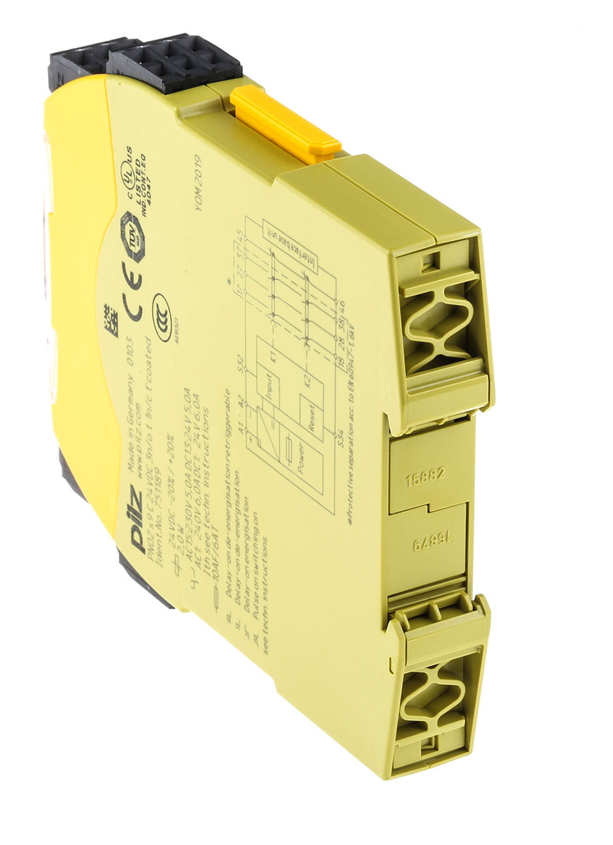 This is PNOZ s9 C 24VDC 3 n/o t 1 n/c t coated manufactured by Pilz. The manufacturer part number is 751189. It performs basic function of time delay. It has a/an e performance level . Moreover, it has a/an manual reset method . In addition, it has 4 safety category ISO 13849-1 . Moreover, it has e PL ISO 13849-1 . It has 1 high-quality auxiliary contact . The product pnoz s9 c, is a highly preferred choice for users. Its accurate length is 98mm. Furthermore, the product is 17.5mm wide. The product comes in 120mm depth. It is supplied with 2 channels. Features 24v dc supply voltage. It includes 3 safety contacts . It features pnozsigma range. The terminal is a cage clamp type.
