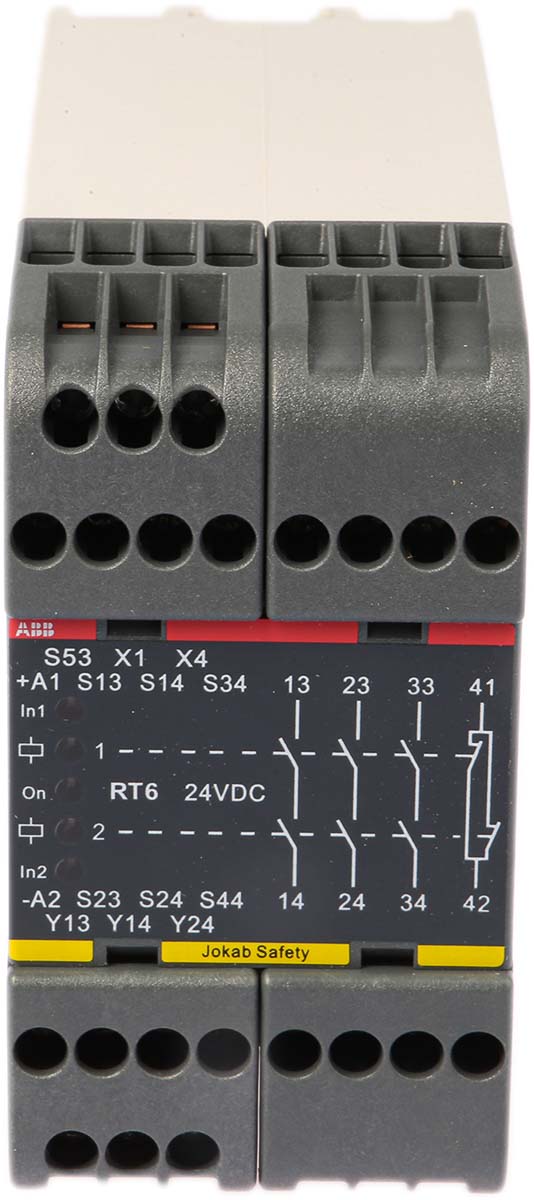 This is 24 V dc Safety Relay - Single or Dual Channel With 4 Safety Contacts manufactured by ABB. The manufacturer part number is 2TLA010026R0000 RT6 24DC. It performs basic function of light beam/curtain, safety mat/edge, safety switch/interlock. It has 3 SIL IEC 61508 safety standard . The product complies with all safety standards, such as ccc ccc, ce ce. Moreover, it has e PL ISO 13849-1 . It provides robust safety and is complied with 4 safety category. The product rt6, is a highly preferred choice for users. Its accurate length is 84mm. It is configurable yes . Furthermore, the product is 45mm wide. The product comes in 120mm depth. It is supplied with 1, 2 channels. Features 24v dc supply voltage. It includes 4 safety contacts . It has 4 high-quality auxiliary contact . It has a/an e performance level . In addition, it has 4 safety category ISO 13849-1 .