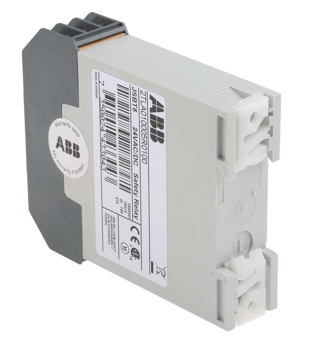 This is 24 V ac/dc Safety Relay - Single Channel With 3 Safety Contacts 1 Auxiliary Contact Automatic Reset manufactured by ABB. The manufacturer part number is 2TLA010005R0100 JSBT5 24AC/DC. It performs basic function of emergency stop, safety switch/interlock. It has 3 SIL IEC 61508 safety standard . Moreover, it has a/an automatic reset method . In addition, it has 4 safety category ISO 13849-1 . Moreover, it has e PL ISO 13849-1 . It has a/an e performance level . The product jsbt5, is a highly preferred choice for users. Its accurate length is 82mm. Furthermore, the product is 22.5mm wide. The product comes in 99mm depth. It is supplied with 1 channels. Features 24v ac/dc supply voltage. It includes 3 safety contacts . It has 1 high-quality auxiliary contact . The terminal is a screw type.