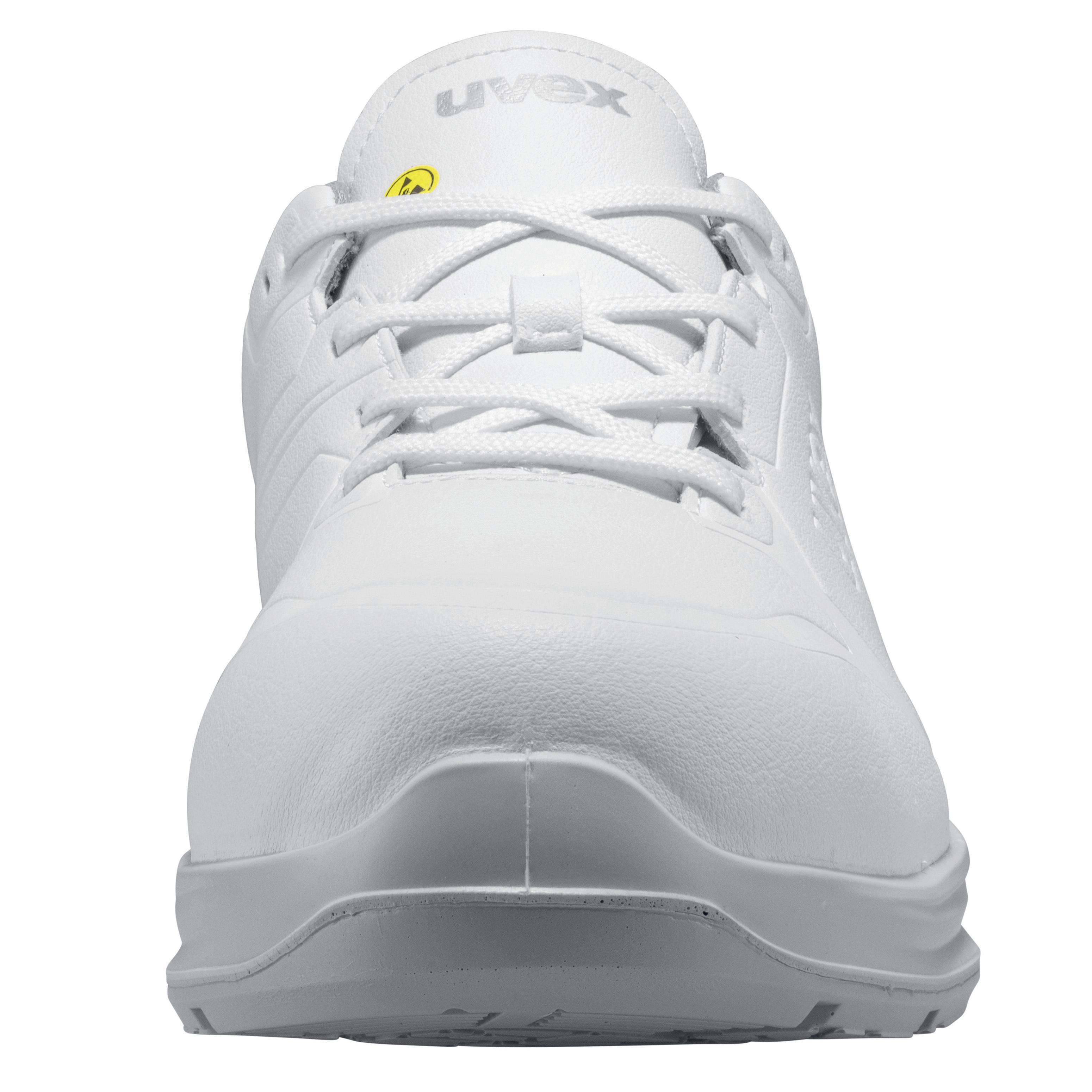 This is white Unisex White Toe Capped Safety Shoes EU 40 UK 6.5 manufactured by Uvex. The manufacturer part number is 6582240. Water Resistant Options - yes. The European shoe size includes 40. The product's upper materials include microfibre. Safety Toe Options - yes. Moreover, it includes additional safety features like a . It is a lace up closure with unique specifications. Anti-Slip Options - yes. In addition, unisex is the available "Gender" of the product. It has a decent white colour. It features a s3 safety rating. Penetration Resistant Options - yes. A bespoke product is highly resistant to perforation, slip, water. ESD Safety - yes. While in the UK, it has the size of 6.5. Anti-Static Options - yes. The product uvex white, is a highly preferred choice for users. It is rated with src slip resistance. Its sole material is pu2d . It is offered with 7.5 US shoe size . This composite safety toe is a preferred choice for a wide variety of professionals and DIYers. The midsole is a non metallic sole. It has a standard 25.5 shoe size JP/CN .