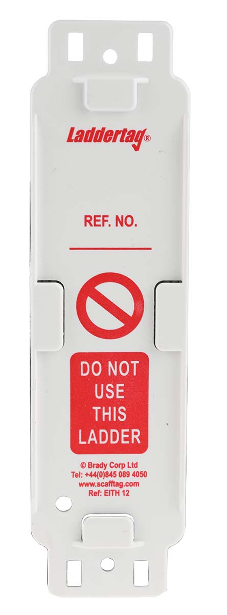 This is Tag Holder manufactured by Brady. The manufacturer part number is LAD-GB-EITH-12-A. It is offered in english language . It has red on white insert colour . It contains 10 item per package . It comes in ladder tag configuration.