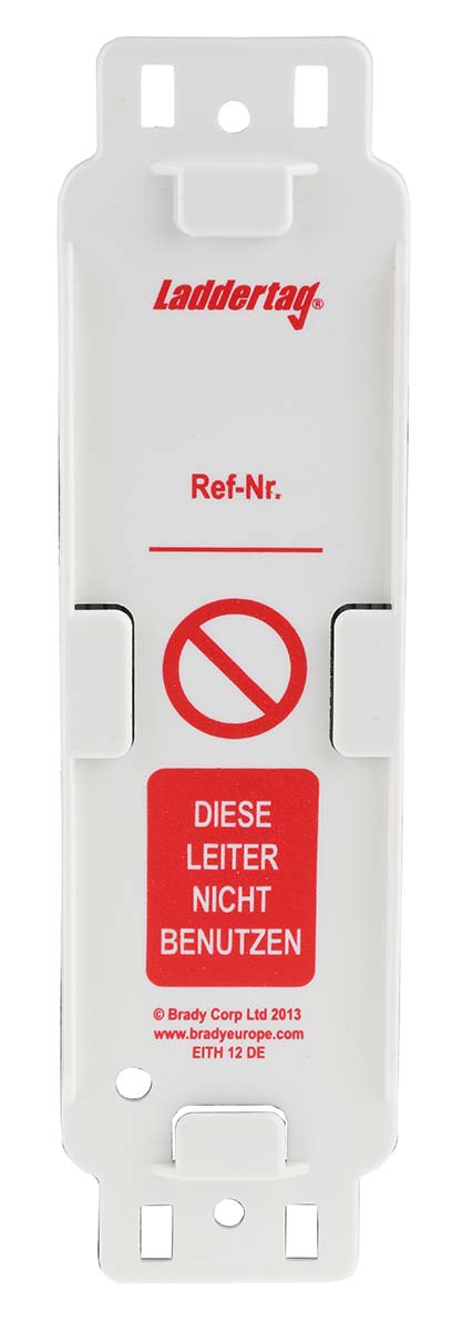 This is Ladder Tag Kit Contents 1 Pen 10 Laddertag Holders 10 Laddertag Inserts (German) manufactured by Brady. The manufacturer part number is LAD-DE-EITH-L12-A. It is offered in german language . It has red on white insert colour . It contains 1 item per package . It comes in ladder tag configuration. This versatile kit contents include 10 laddertag holders, 10 inserts & 1 pen components.