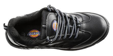 This is Stockton Men's Black Leather Mesh Trainer UK 8 EUR 42 S1P manufactured by Dickies. The manufacturer part number is FA13335 Stockton Super Safety Trainer S1-P Size 8. While in the UK, it has the size of 8. It is a lace up closure with unique specifications. The product stockton, is a highly preferred choice for users. Anti-Static Options - yes. Water Resistant Options - no. Safety Toe Options - yes. In addition, men is the available "Gender" of the product. It has a decent black colour. It features a s1p safety rating. The European shoe size includes 42. Penetration Resistant Options - yes. The product's upper materials include leather, mesh. It is rated with sra slip resistance. A bespoke product is highly resistant to oil, petrol. ESD Safety - no. This steel safety toe is a preferred choice for a wide variety of professionals and DIYers. The midsole is a steel sole.