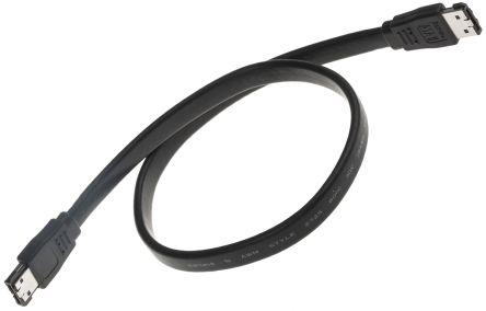 This is Serial Cable Assembly 500mm Male to Male 7-Pin SATA II to 7-Pin SATA II manufactured by Roline. The manufacturer part number is 11.03.1575. The connector A is male sata 7-pin connector. While the connector B is male sata 7-pin. It is a typical serial cable assembly cable. The sheath has an adorable black colour. Its accurate length is 500mm.