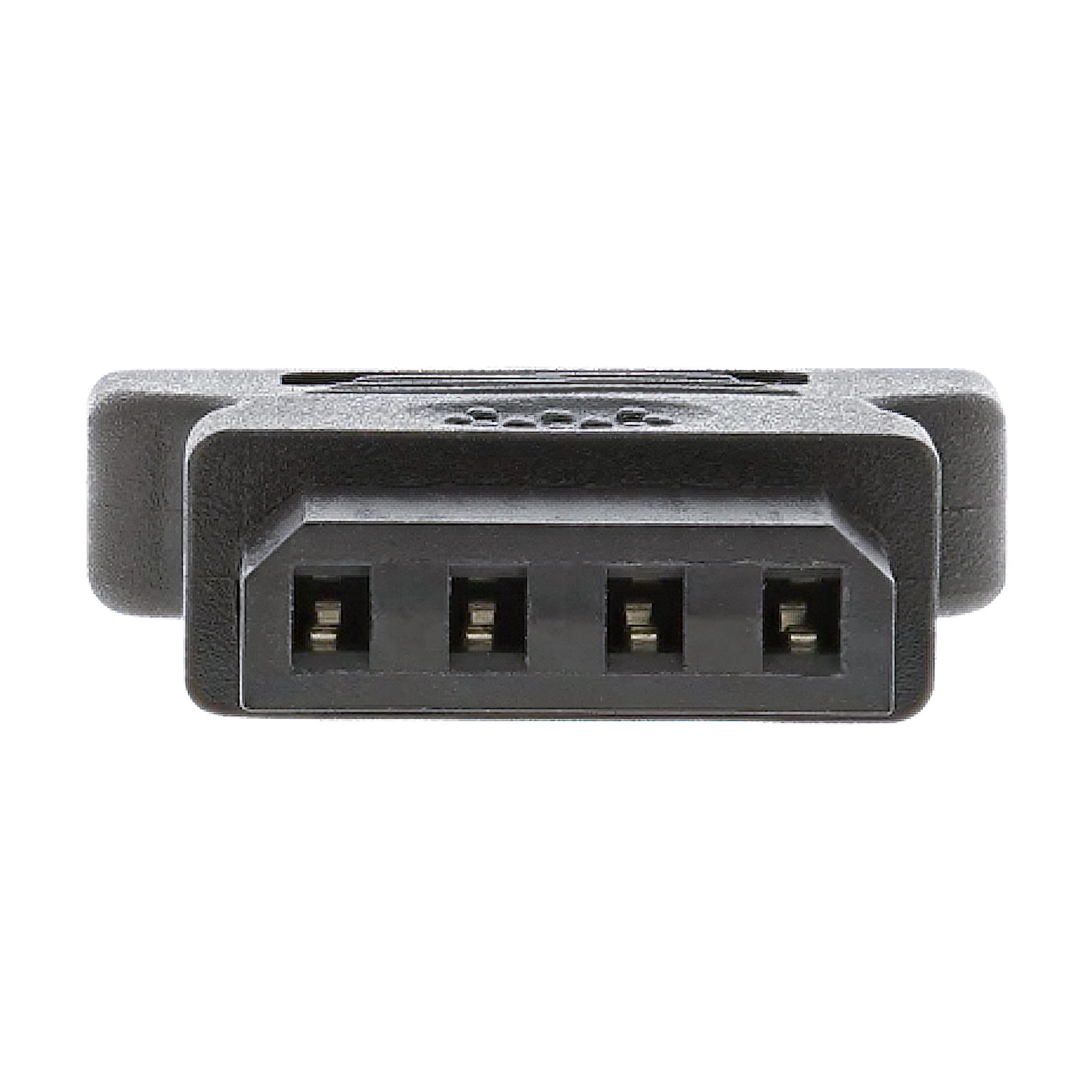 This is Male SATA Power to Female LP4 Cable 1.4in manufactured by StarTech.com. The manufacturer part number is LP4SATAFM. Connector 2 is a female connector. There are 15 contacts on connector 1. This connector 1 is a male. Its accurate length is 1.4in. While the Connector 2 is lp4. Connector 1 is sata power.