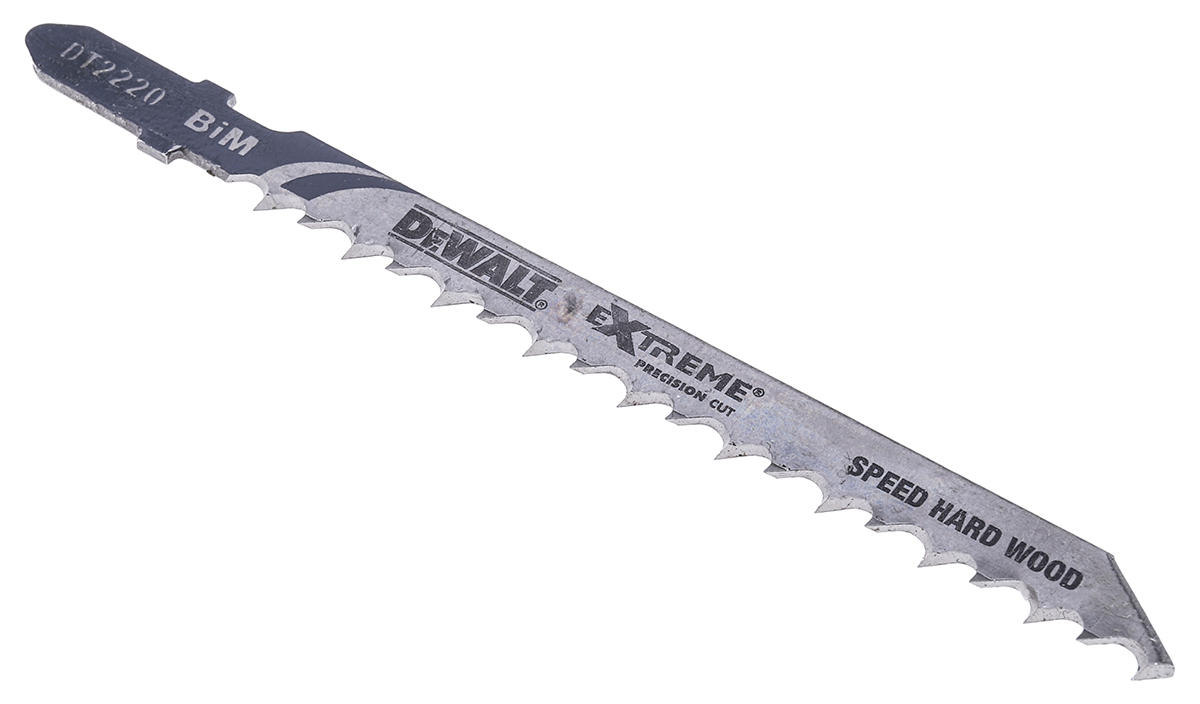 This is Dewalt 100 mm T-Shank bimetal Jigsaw Blade Set 70mm Cutting Length 4.2mm Tooth Pitch manufactured by DeWALT. The manufacturer part number is DT2220-QZ. It has 6 number of teeth per inch . It has 3 items per pack . It has about 70mm cutting length . Applications Information involves hard wood; chipboard; plywood; laminates. Moreover, its tooth pitch is about 4.2mm . It is designed with a jigsaw blade type saw blade .