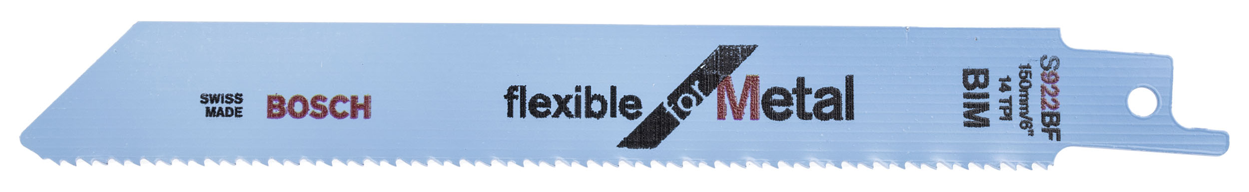 This is 150mm Cutting Length bimetal Reciprocating Saw Blade 14 Teeth Per Inch manufactured by Bosch. The manufacturer part number is 2608656014. Applications Information involves ferrous metal. It has 14 number of teeth per inch . It has 5 items per pack . It has about 150mm cutting length . It is designed with a reciprocating saw blade type saw blade .