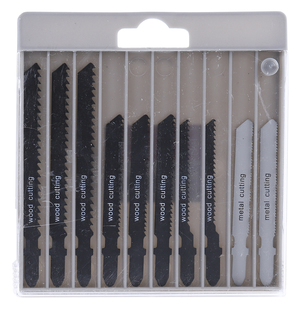 This is 100 mm 75 mm 77 mm T-Shank Jigsaw Blade Set manufactured by RS Pro. The manufacturer part number is 799-9348. Applications Information involves metal, wood. It is designed with a jigsaw blade type saw blade . It has 10 items per pack . It has about 75mm cutting length . In addition, its blade is made up of hss material .