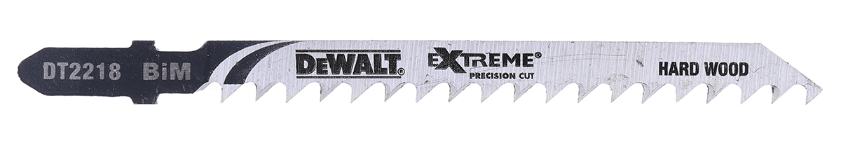 This is Dewalt 100 mm T-Shank bimetal Jigsaw Blade Set 70mm Cutting Length 4.2mm Tooth Pitch manufactured by DeWALT. The manufacturer part number is DT2218R-GB. Applications Information involves hard wood; chipboard; plywood; laminates. It has 3 items per pack . It has about 70mm cutting length . It is designed with a jigsaw blade type saw blade .