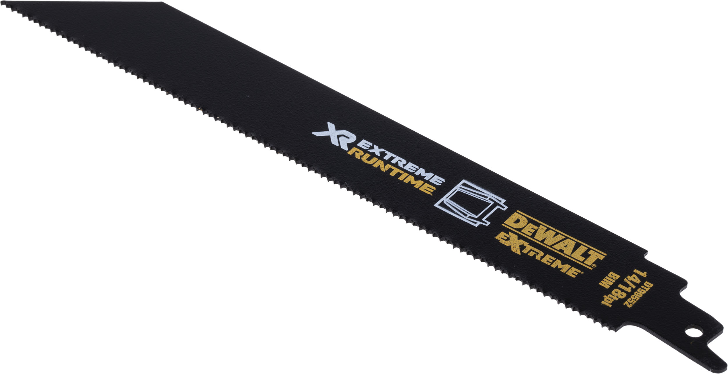 This is Dewalt 203mm Cutting Length Reciprocating Saw Blade 14/18 TPI Teeth Per Inch manufactured by DeWALT. The manufacturer part number is DT99552-QZ. It has 14 → 18 number of teeth per inch . It is designed with a reciprocating saw blade type saw blade . It has about 203mm cutting length . Applications Information involves metal. In addition, its blade is made up of bi-metal material . It is bimetal yes . It has 5 items per pack .