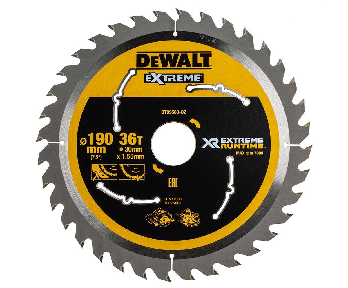 This is Dewalt 190mm Circular Saw Blade manufactured by DeWALT. The manufacturer part number is DT99563-QZ. Its arbor diameter is about 30mm . It has 1 items per pack . The blade diameter of the product is 190mm . It is designed with a circular saw blade type saw blade . It contains 36 teeth. In addition, its blade is made up of tungsten carbide material .