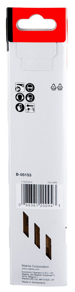 This is 203mm Cutting Length Reciprocating Saw Blade 6 <arrow/> 10 Teeth Per Inch Pack of 5 manufactured by Makita. The manufacturer part number is B-05153. Applications Information involves wood. It has 6 → 10 number of teeth per inch . It has 5 items per pack . It has about 203mm cutting length . It is designed with a reciprocating saw blade type saw blade .