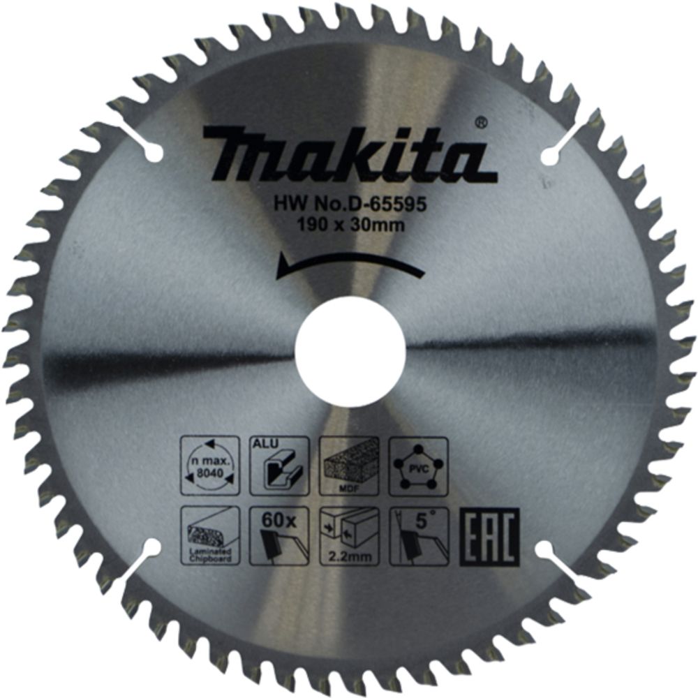 This is TCT SAW BLADE (MP) 190mmx60T manufactured by Makita. The manufacturer part number is D-65595. Its arbor diameter is about 30mm . It contains 60 teeth. It is designed with a circular saw blade type saw blade . The blade diameter of the product is 190mm . Applications Information involves aluminium, chipboard, mdf, pvc. In addition, its blade is made up of tungsten carbide material . It has 1 items per pack .