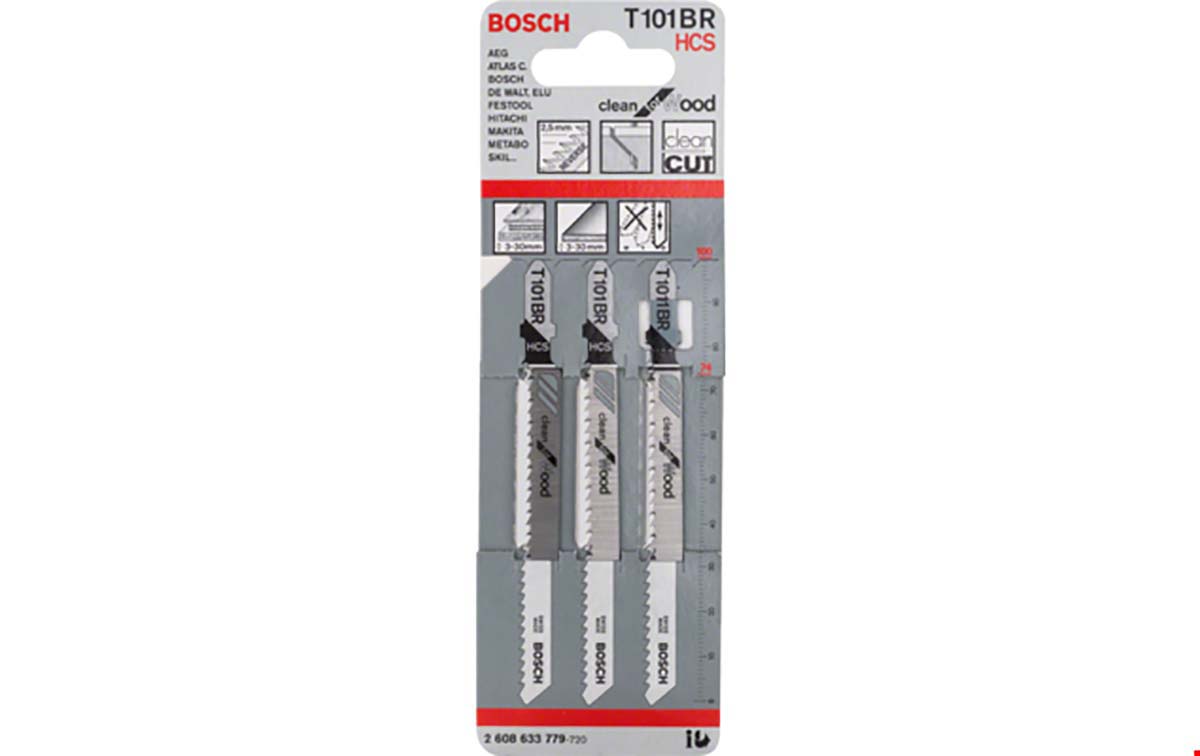 This is T101BR HCS Clean for Wood 5Pack manufactured by Bosch. The manufacturer part number is 2608630014. Moreover, its tooth pitch is about 2.5mm . It has 5 items per pack . It has about 100mm cutting length . It is designed with a reciprocating saw blade type saw blade .