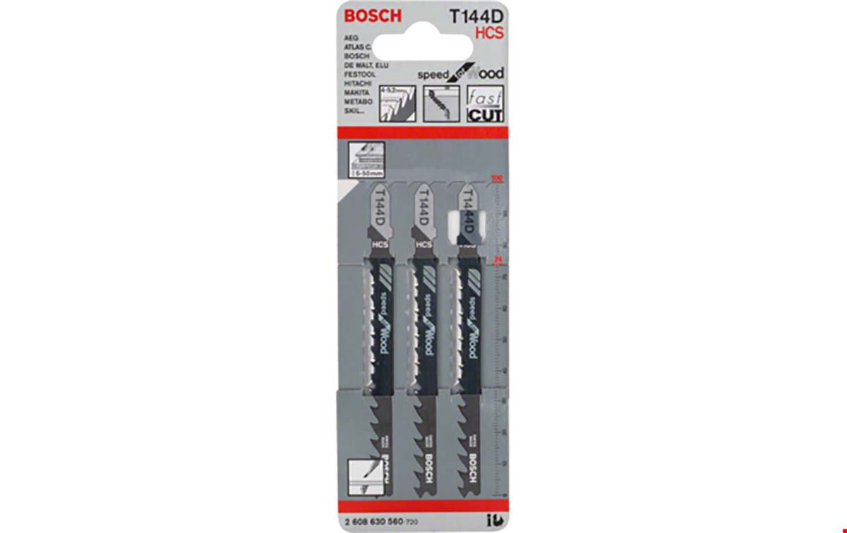 This is T144D HCS Speed for Wood 5Pack manufactured by Bosch. The manufacturer part number is 2608630040. Moreover, its tooth pitch is about 4-5.2mm . It has 5 items per pack . It has about 100mm cutting length . It is designed with a jigsaw blade type saw blade .