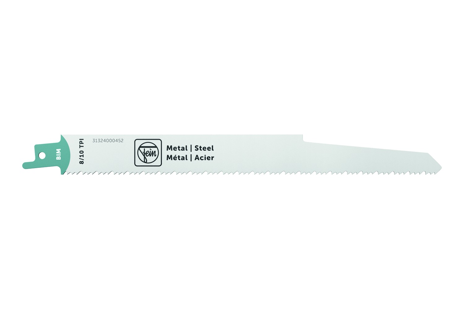 This is 8/10 Teeth Per Inch Metal 225mm Cutting Length Reciprocating Saw Blade Pack of 3 manufactured by FEIN. The manufacturer part number is 31324000452. It has 8/10 number of teeth per inch . It has 3 items per pack . It has about 225mm cutting length . Applications Information involves metal. It is offered to cut metal materials . It is designed with a reciprocating saw blade type saw blade .
