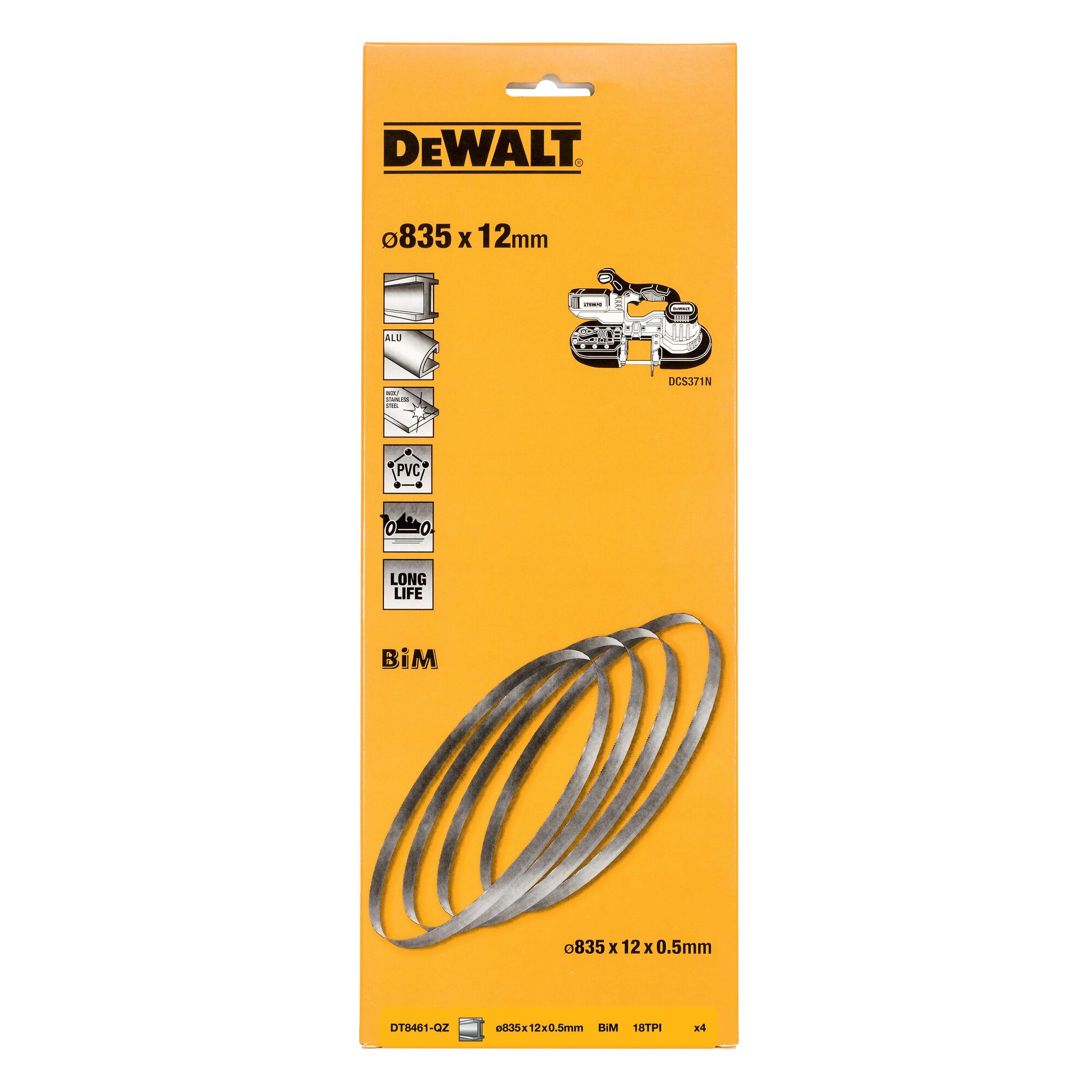 This is 18 Teeth Per Inch Metal Plastic Band Saw Blade Pack of 4 manufactured by DeWALT. The manufacturer part number is DT8461-QZ. Applications Information involves cutting. It has 18 number of teeth per inch . It is offered to cut metal, plastic materials . It has 4 items per pack . It is designed with a band saw blade type saw blade .